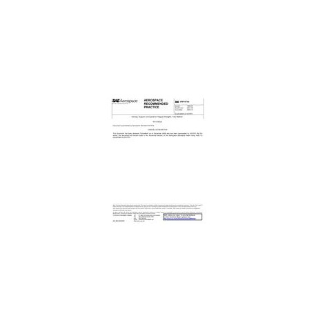 This document has been declared "CANCELLED" as of December 2008 and has been superseded by AS 1974. By this action, this document will remain listed in the Numercial Section of the Aerospace Standards Index noting that it is superseded by AS 1974.This recommended practice establishes vibration and transmissibility test procedures which compare the relative strengths of various loop and saddle type support clamps. This procedure is intended for conducting fatigue testing which is standard throughout the aerospace industry thereby establishing a clamp strength comparison which can be used in an evaluation process. The testing required by this recommended practice ensures that clamps will meet adequate fatigue requirements only. It does not infer qualification of the clamp installation techniques or its ability to meet in-service environments or operating conditions. Separate qualification testing should be performed to ensure satisfactory service of the installed clamp.