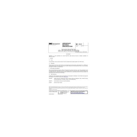 SAE AMS4467 Aluminum Alloy, Sheet and Plate, Alclad, 4.4Cu - 1.5Mg - 0.60Mn (Alclad 2024, -T861 Sheet & Plate), Solution Heat Treated, 6% Cold Worked and Artificially Aged