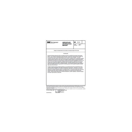 This document is offered to provide state-of-the-art information about design factors that must be considered in the design of new or significantly modified engine test cells used to test propeller equipped turboprop engines in either QEC or bare engine configurations. The report does not address design considerations for test cells designed to test turboprop engines with dynamometer type load absorption devices because they are essentially tested as turboshaft engines. Design considerations for those test cells are presented in AIR 4989.