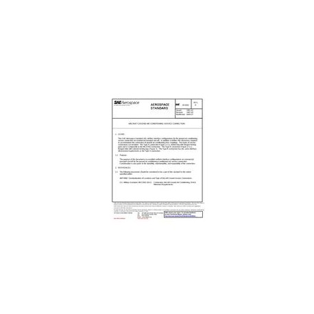 This SAE Aerospace Standard (AS) defines interface configurations for the ground air conditioning service connection on commercial transport aircraft. In addition, it defines the clearances required to accommodate the connection of ground air conditioning hose couplings. Two types of service connections are included. The Type A connection is a slotted ring with integral locking pads and is comparable to the MS33562 connection. The Type B connection is a flanged tube with external locking lugs. The Type B connection has the same interface dimensional requirements as the Type A connection.The purpose of this document is to establish uniform interface configurations on commercial transport aircraft for the ground air conditioning (conditioned air) service connection. Consideration is also given to the durability, maintainability, and repairability of the connection.