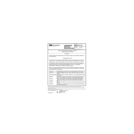 This specification has been declared "NONCURRENT" by the Aerospace Materials Division, SAE, as of October 2007. It is recommended, therefore, that this specification not be specified for new designs."NONCURRENT" refers to those specifications which have previously been widely used and which may be required for production or processing of existing designs in the future. The Aerospace materials Division, however, doe snot recommend these specifications for future use in new designs.This specification covers the requirements for compositions of corrosion-resistant (18-8) steel bars, rods, wire and forging stock.