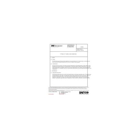 This SAE Aerospace Standard (AS) establishes the requirements for 37 degrees flared tube or machined cone fluid connection fittings (see Section 6) for use in all types of fluid systems.Fittings shall be furnished in the types and styles designated by the applicable AN, AS, MS, NAS, or other engineering standard drawings. This specification is the same as MIL-F-5509 as applicable to 37 degrees flared tube fittings except for updated materials and process specifications and industry coordinated general improvements. It is intended to serve as a procurement specification for the fittings described herein and in Section 6.