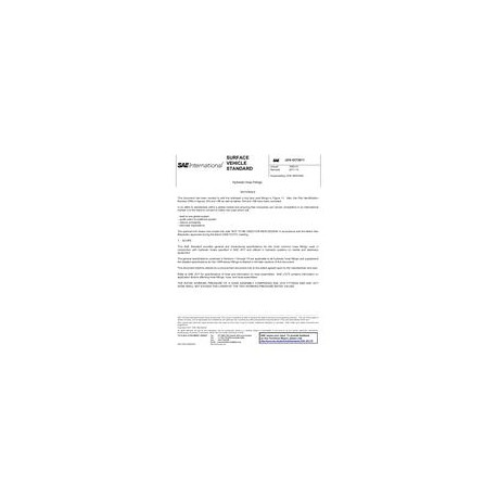 This SAE Standard provides general and dimensional specifications for the most common hose fittings used in conjunction with hydraulic hoses specified in SAE J517 and utilized in hydraulic systems on mobile and stationary equipment.The general specifications contained in Sections 1 through 15 are applicable to all hydraulic hose fittings and supplement the detailed specifications for the 100R-series fittings contained in the later sections of this document.This document shall be utilized as a procurement document only to the extent agreed upon by the manufacturer and user.Refer to SAE J517 for specifications of hose and information on hose assemblies. SAE J1273 contains information on application factors affecting hose fittings, hose, and hose assemblies.THE RATED WORKING PRESSURE OF A HOSE ASSEMBLY COMPRISING SAE J516 FITTINGS AND SAE J517 HOSE SHALL NOT EXCEED THE LOWER OF THE TWO WORKING PRESSURE RATED VALUES.