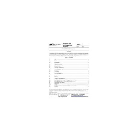 The SAE Guide to APU health management establishes the foundation for developing a successful APU health management program at any aircraft or APU operator, such as an airline, an OEM, an equipment supplier, or a military transport unit. This guide identifies the best practices for using an APU health management program to improve dispatch reliability and to satisfy Extended Operations (ETOPS) availability requirements.There have been many attempts to institute APU health management programs but most programs were modeled after the pre-existing main engine programs. These models often overlooked special considerations that are necessary to make an APU health management program successful. This report will identify the unique characteristics of a successful APU health management program and the best practices for establishing a system. The purpose of this report is to guide the development and use of a successful APU health management effort in a practical, cost effective method. This report will: Identify the costs and benefits associated with developing an effective APU health management program; Identify the best practices and technologies for developing and implementing an APU health management program; Identify the best practices for using APU health management to prevent failures and disruptions to operations; Identify a recommended collection of data, including recommended measurements and recommended events.