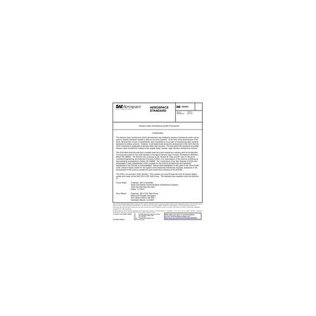 This SAE Aerospace Standard (AS) establishes a Generic Open Architecture (GOA) Framework for application independent hardware/software systems. This document defines the interface classes for the GOA Framework. Supplemental documents define the guidelines for applying the GOA Framework to specific applications.