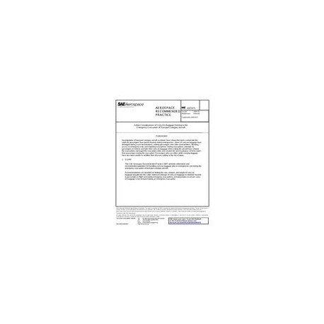 This SAE Aerospace Recommended Practice (ARP) provides information and recommended guidelines for handling carry-on baggage prior to emergencies and during the emergency evacuation of transport category aircraft.Recommendations are provided on limiting the size, amount, and weight of carry-on baggage brought into the cabin, improved stowage of carry-on baggage to minimize hazards to passengers in flight and during emergency evacuations, and procedures to ensure carry-on baggage is not removed during an emergency evacuation.