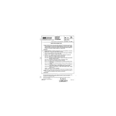 This SAE Standard covers motor vehicle brake fluids of the nonpetroleum type for use in the braking system of any motor vehicle such as a passenger car, truck, bus, or trailer. These fluids are not intended for use under arctic conditions. These fluids are designed for use in braking systems fitted with rubber cups and seals made from styrene-butadiene rubber (SBR), or a terpolymer of ethylene, propylene, and a diene (EPDM).