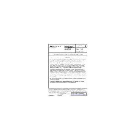 This ARP covers a procedure to be used in the determination of 0.05 to 0.3 ppm of chlorine in oxygen from any type of generator used for emergency or other life-support systems. The methyl orange method described can be considered as a referee technique. Instrumental analysis is also given. This ARP describes a method for rapid and reliable measurement of chlorine in oxygen from a solid chemical oxygen generator. The method of sampling and analysis used in this procedure is adequate to encompass the range of interest relevant to the 0.3 ppm limit set for chlorine in oxygen. The test is sufficiently flexible to make the determination during a part of or for the first 60 s after activation, since this is the usual time during which chlorine may be found in the oxygen being generated.
