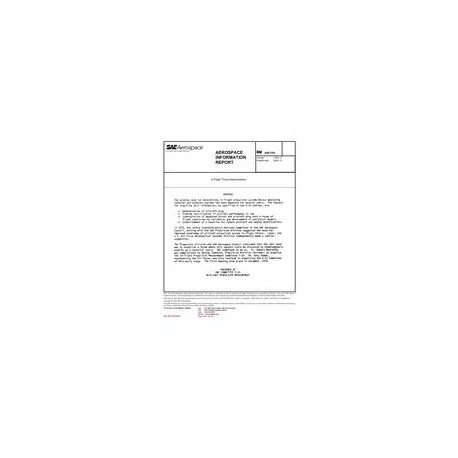 This report reviews the major aspects of processes that may be used for the determination of in-flight thrust. It includes discussions of basic definitions, analytical and ground-test methods to predict installed thrust of a given propulsion system, and methods to gather data and calculate thrust of propulsion system during the flight development program of the aircraft. Much of the treatment is necessarily brief due to space limitations. This document and the British Ministry/Industry Drag Analysis Panel (MIDAP) Guide, which SAE Committee E-33 used as a starting point, can be used to understand the processes and limitations involved in the determination of in-flight thrust. (1.1)* Application to a specific in-flight thrust determination program will require the use of many important assumptions not fully developed herein, and these assumptions must be evaluated during the conduct of the program.