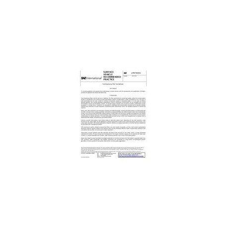 This SAE Recommended Practice is applicable to gasoline and diesel fuel filters installed on fuel dispensing equipment, mobile or stationary. It describes a set of tests used to characterize the structural integrity, filtration performance, and reaction to water contaminant with fuel dispensing filters.