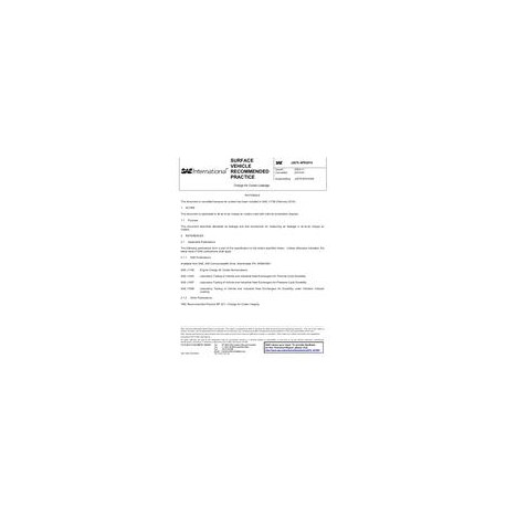 This document is cancelled becasue its content has been included in SAE J 1726 (February 2010).This document is applicable to all air-to-air charge air coolers used with internal combustion engines.This document describes allowable air leakage and test procedures for measuring air leakage in air-to-air charge air coolers.