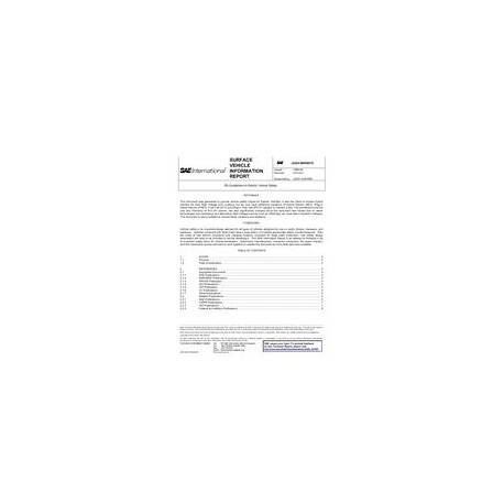 This SAE Information Report identifies and defines the preferred technical guidelines relating to safety for vehicles that contain High Voltage (HV), such as Electric Vehicles (EV), Hybrid Electric Vehicles (HEV), Plug-In Hybrid Electric Vehicle (PHEV), fuel Cell Vehicles (FCV) and Plug-In fule Cell Vehicles (PFCV) during normal operation and charging, as applicable. Guidelines in this document do not necessarily address maintenance, repair, or assembly safety issues.The purpose of this SAE Information Report is to provide introductory safety guideline information that should be considered when designing electric vehicles for use on public roadways.This document covers electric vehicles having a gross vehicle weight rating of 4536 kg (10 000 lb) or less that are designed for use on public roads.