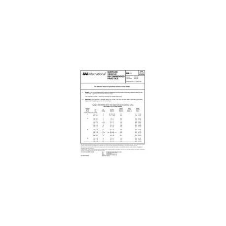 This standard has been declared "CANCELLED" as of August 2009.This SAE Recommended Practice is established for the purpose of providing selection tables of tires preferred for the application to machines of future design. The objective of the tables is to minimize the number of tire sizes.