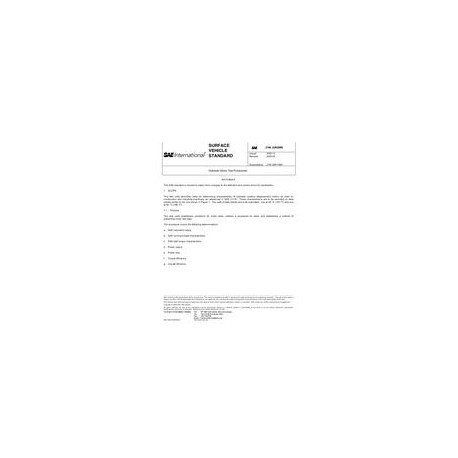 This test code describes tests for determining characteristics of hydraulic positive displacement motors as used on construction and industrial machinery as referenced in SAE J1116. These characteristics are to be recorded on data sheets similar to the one shown in Figure 1. Two sets of data sheets are to be submitted: one at 49 \mDC (120 \mDF) and one at 82 \mDC (180 \mDF).This test code establishes conditions for motor tests, outlines a procedure for tests, and establishes a method of presenting motor test data. The procedures covers the following determinations: a, SAE Volumetric rating; b. SAE running torque characteristics; c. SAE stall torque characteristics; d. Power output; e. Power loss; f. Torque efficiency; g. Overall efficiency