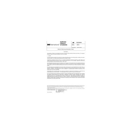 This SAE Standard prescribes the procedure for making hardenability tests and recording results on shallow and medium hardening steels, but not deep hardening steels that will normally air harden.Included are procedures using the 25 mm (1 in) standard hardenability end- quench specimen for both medium and shallow hardening steels and subsize method for bars less than 32 mm (1-1/4 in) in diameter. Methods for determining case hardenability of carburized steels are given in SAE J1975.Any hardenability test made under other conditions than those given in this document will not be deemed standard and will be subject to agreement between supplier and user. Whenever check tests are made, all laboratories concerned must arrange to use the same alternate procedure with reference to test specimen and method of grinding for hardness testing.For routine testing of the hardenability of successive heats of steel required to have hardenability within certain limits, it is sufficient to designate hardenability simply in terms of distance from the quenched end to the point at which a certain hardness is obtained. This designation may also be adequate for comparing steels of different compositions to see whether they have similar hardenability.Hardenability limits for specifying steel in this manner are obtained by measuring the hardenability of a steel which has proved satisfactory for the use intended. The hardenability test may be used in this way as an empirical test.For new components where manufacturing experience is lacking, hardenability data may be effectively used to estimate the hardness profile provided by any given steel. Attendantly, the ability to predict hardenability from chemical composition has become increasingly important when comparing various steel grades or developing new steels for specific applications. One such procedure is described in Appendix A. Other hardenability prediction methods are available from the selected references in Section 2. However, it should be emphasized that the use of any hardenability prediction procedure does not preclude the importance of conducting Jominy end-quench tests to determine the actual hardenability of any specific grade of steel.Hardenability data may be used to estimate hardnesses obtainable with any steel in new machine parts not yet in production and not similar to any parts on which production experience is available. Various hardenability application methods are described in the selected references, Section 2.1, 23 to 25. It appears none of these methods are precise, but these are often useful for estimation purposes. Final correlation on actual parts is necessary.