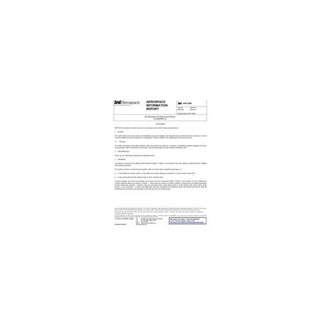 This AIR defines the areas where incompatibility may exist between the selected wire and the electrical connector in which it is terminated and how to design for compatibility. Refer to ARP914 for a glossary of connection terms.This SAE Aerospace Information Report (AIR) documents the need for a system compatibility analysis between the wire, its termination within the electrical connector, and the associated contact insertion/extraction tool.